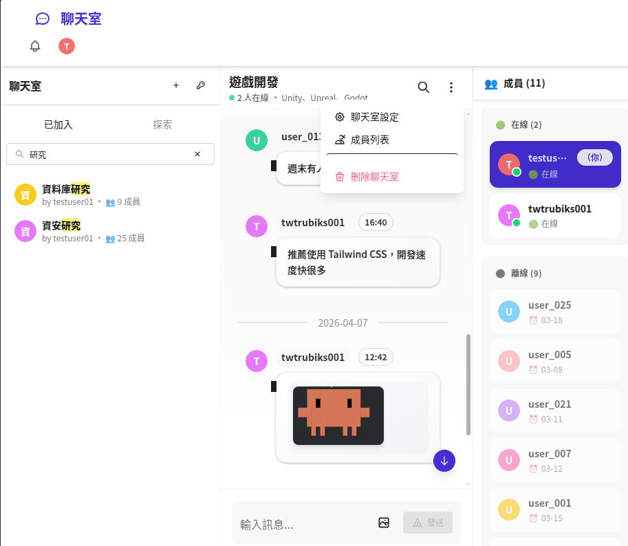 一個基於 FastAPI + MongoDB + SvelteKit 2 (Svelte 5) 的現代化即時聊天室應用程式,